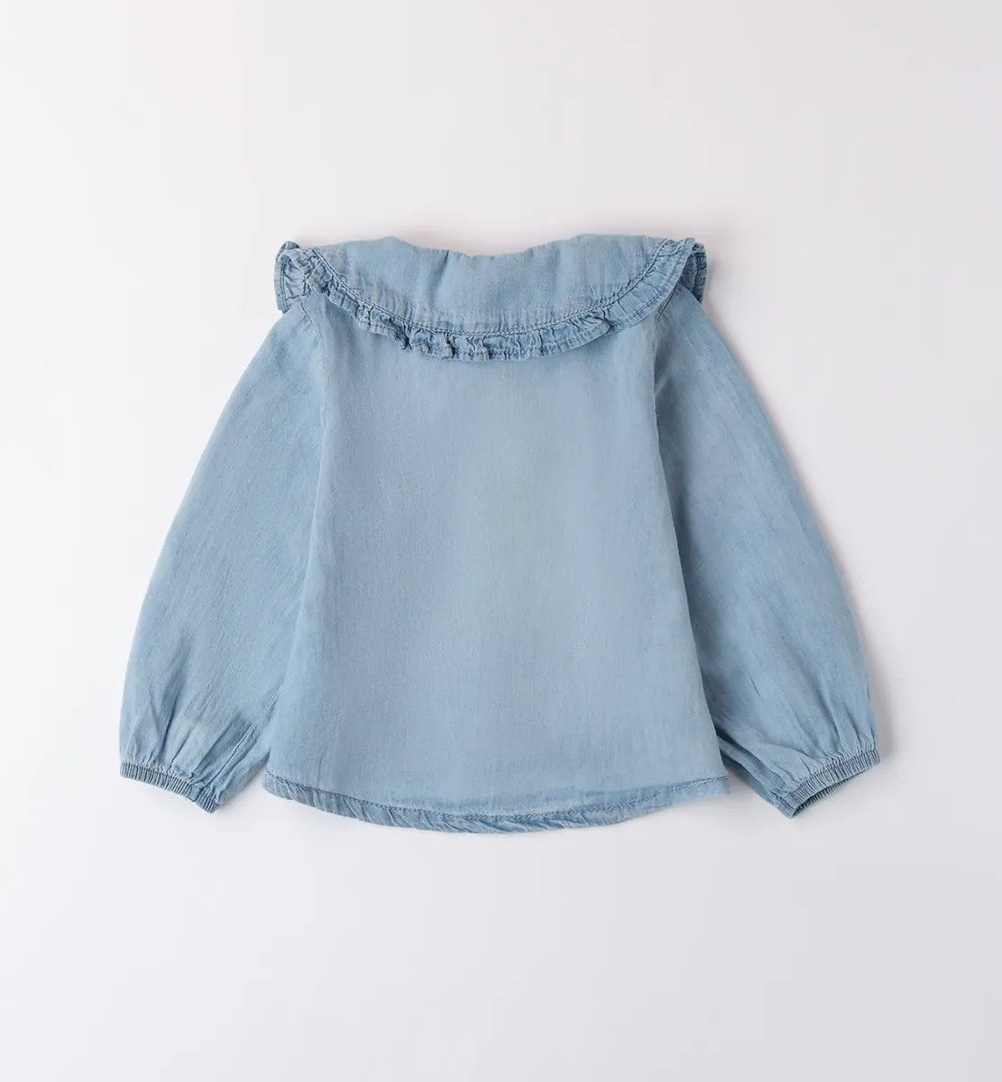 Превратите каждый день в сказку с этой невероятно милой джинсовой блузкой! Мягкий, как облачко, деним и очаровательный воротничок с оборками создают неповторимый образ, который покорит сердца всех окружающих.