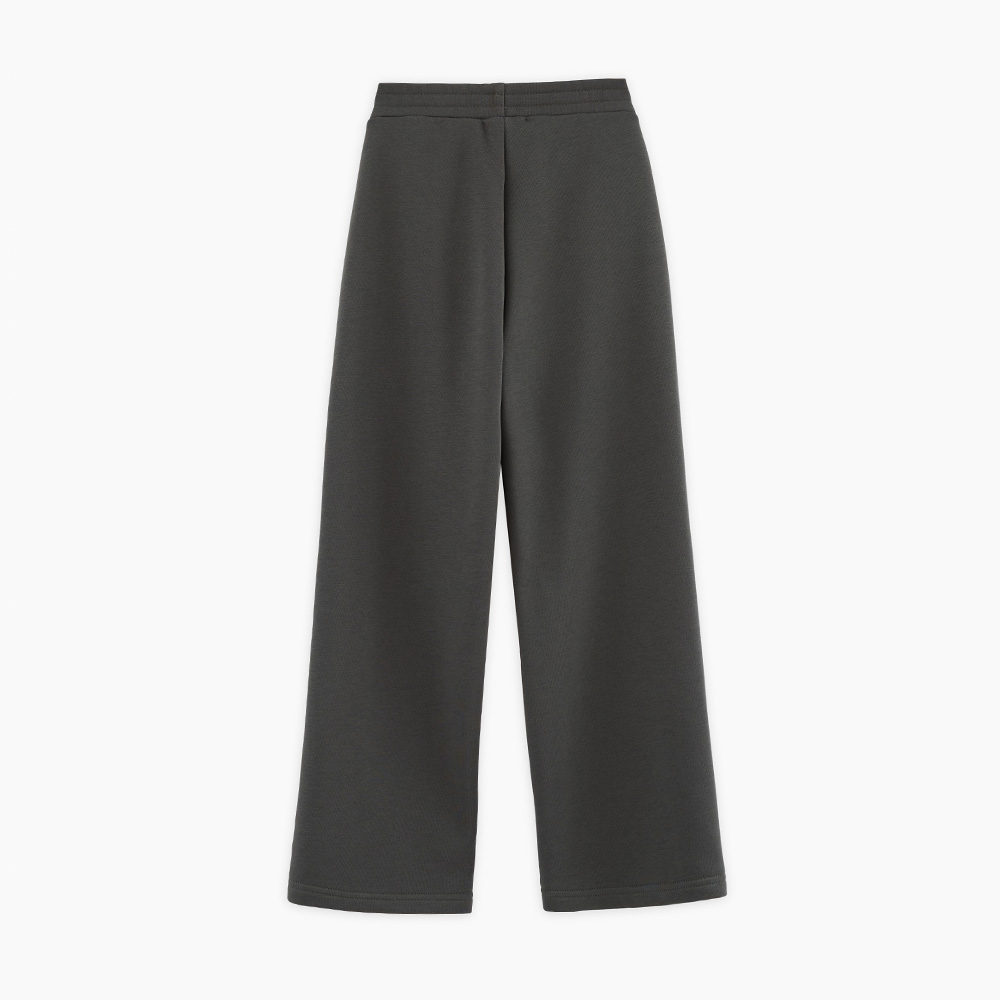 Брюки глубокого оттенка тёмный лес для девочки. Прямая широкая модель со средней посадкой. Изделие без застежки, на мягком эластичном поясе. Брюки дополнены карманами в швах. Модель из футера декорирована авторской печатью.