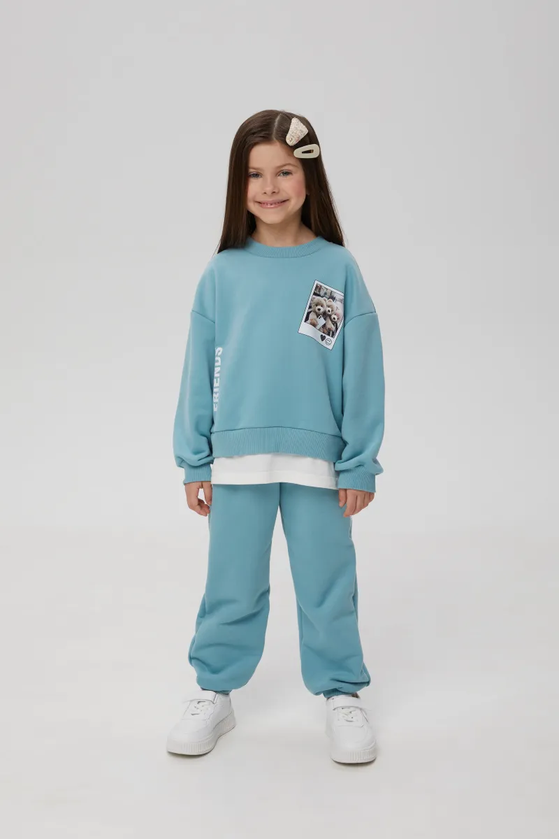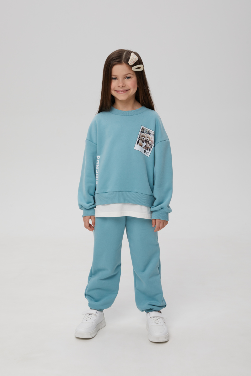 Брюки приятного серо-голубого оттенка для девочки. Прямая модель со средней посадкой. Изделие без застежки. Мягкий эластичный пояс и манжеты из рибаны. Брюки дополнены карманами-хулиганами. Модель из тактильно приятного футера – это стиль и комфорт.