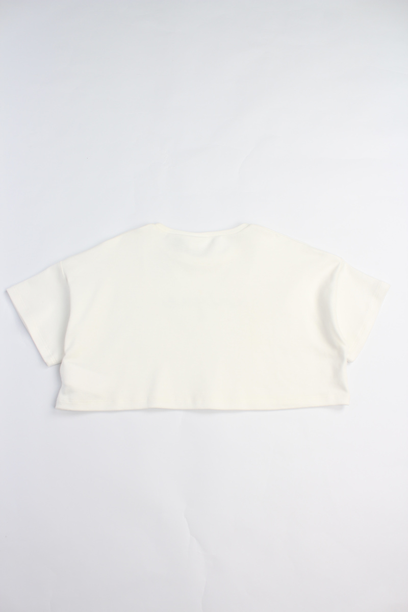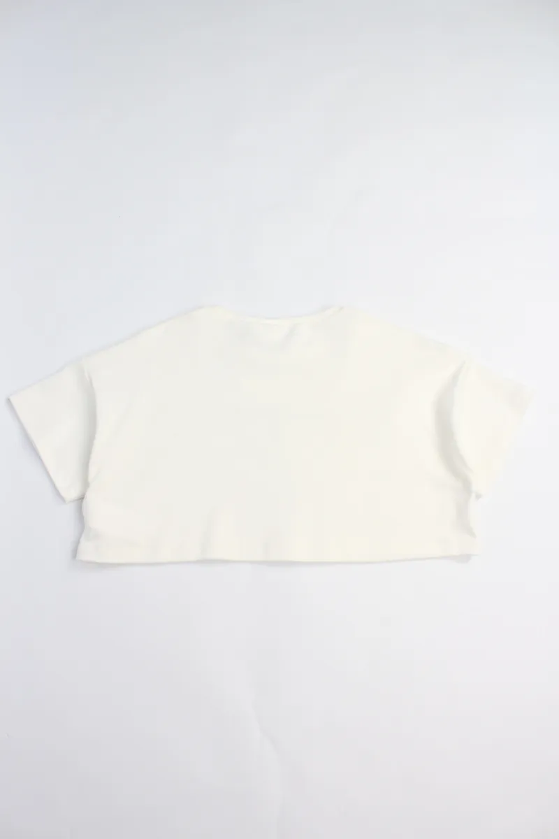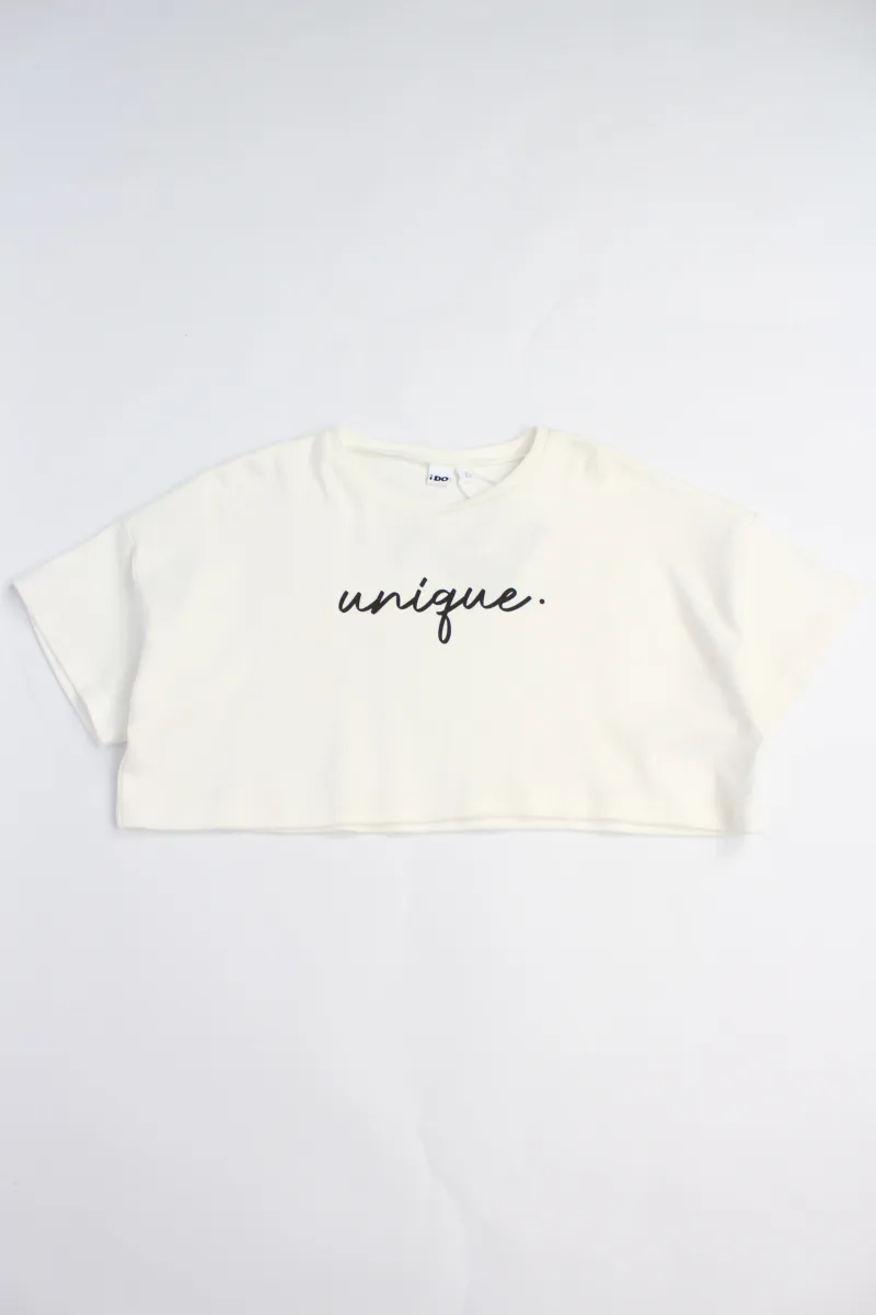 Комплект iDO для девочек, состоит из укороченной футболки из 100% хлопковой ткани интерлок, украшенной принтом, и лонгслива из эластичного хлопкового трикотажа, украшенного принтом-надписью.