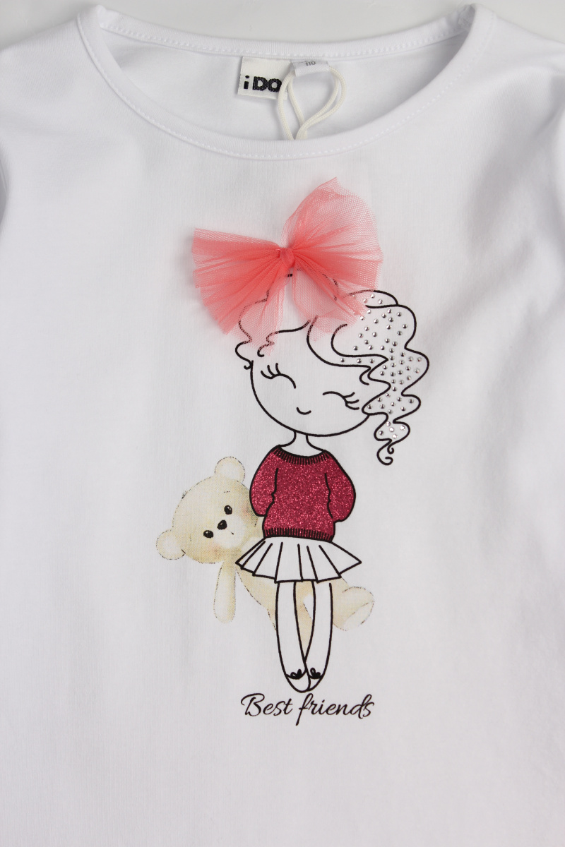 Лонгслив для девочек от итальянского бренда iDO. Модель с круглым вырезом и задней застежкой на пуговицы. Практичный вариант на каждый день!