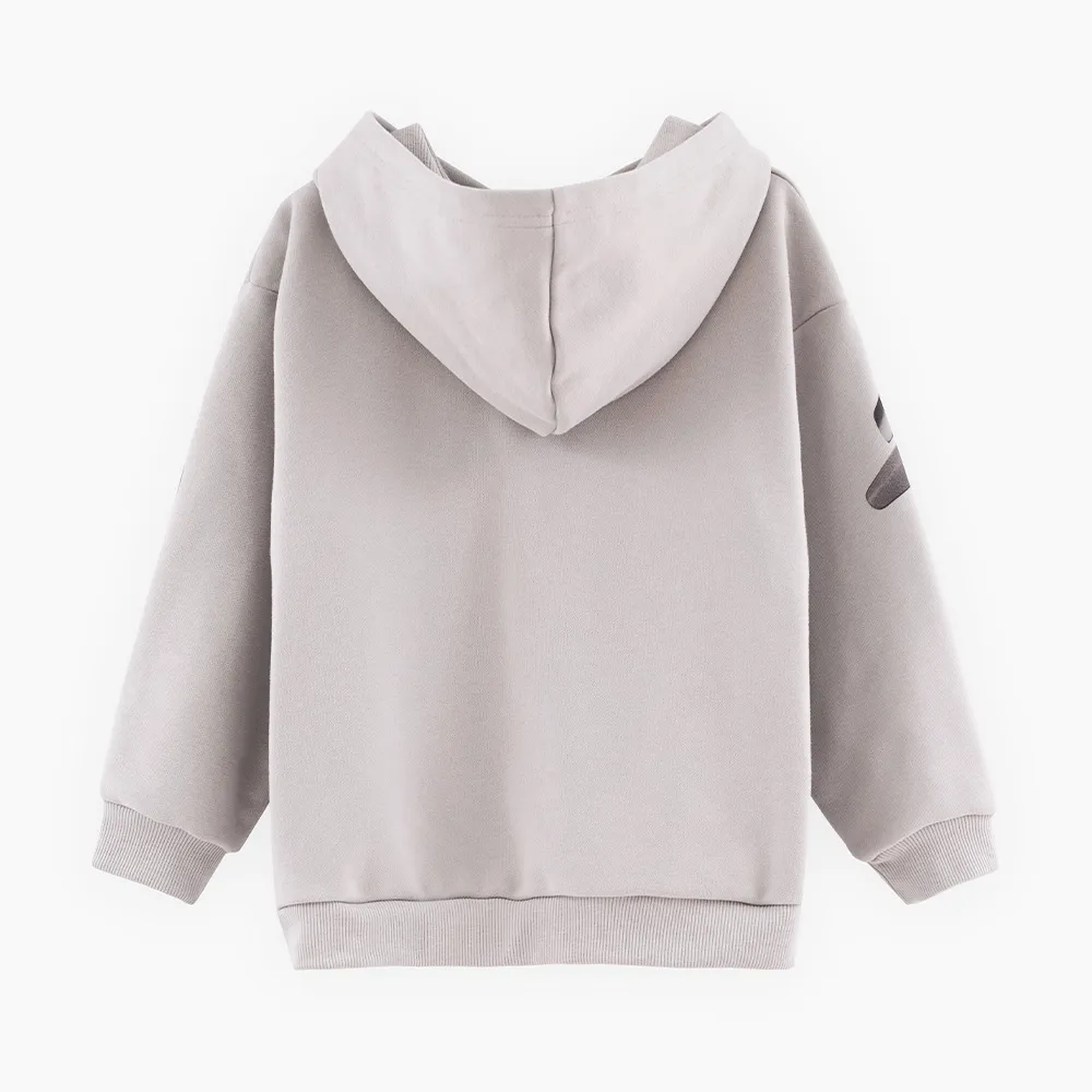 Худи оттенка серая дымка. Модель прямого объёмного силуэта с глубоким капюшоном. Приспущенная линия плеча. Манжеты и низ изделия из эластичной рибаны. Худи из футера с бархатистым эффектом декорировано дизайнерским принтом, с использованием DTF печати.
