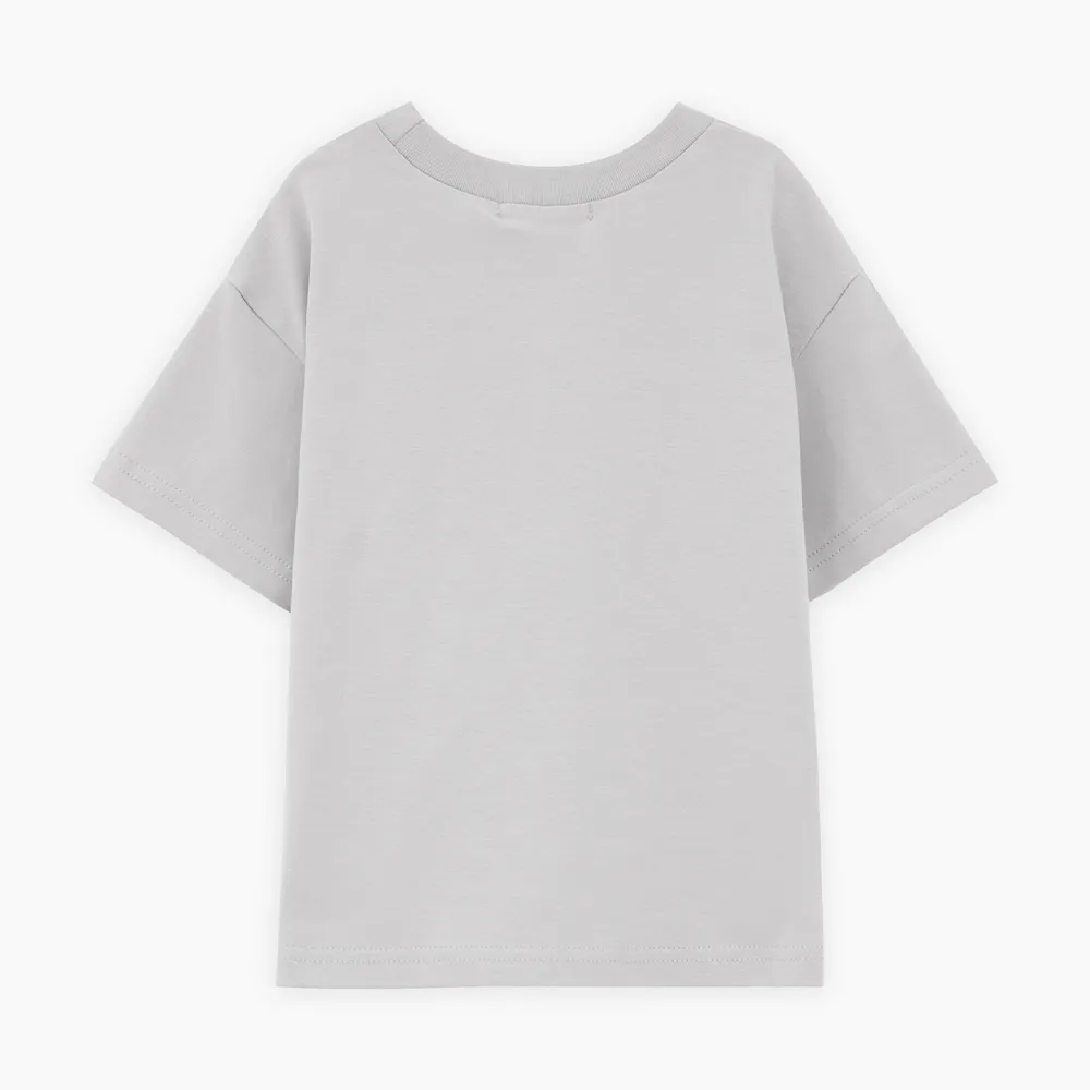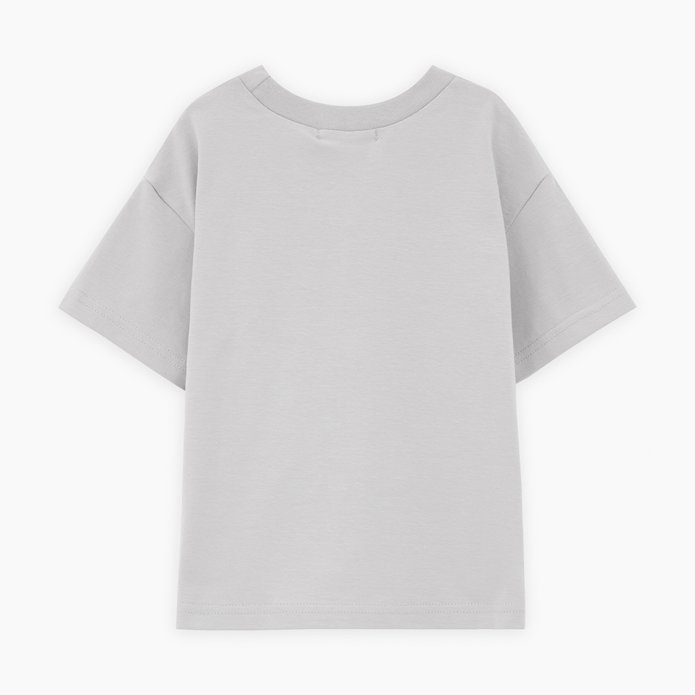 Дизайнерская футболка интересного серо-зелёного оттенка для мальчика. Прямая объёмная модель. Спущенная линия плеча. Эластичная горловина. Футболка с авторским принтом, безопасная и качественная трансферная печать.