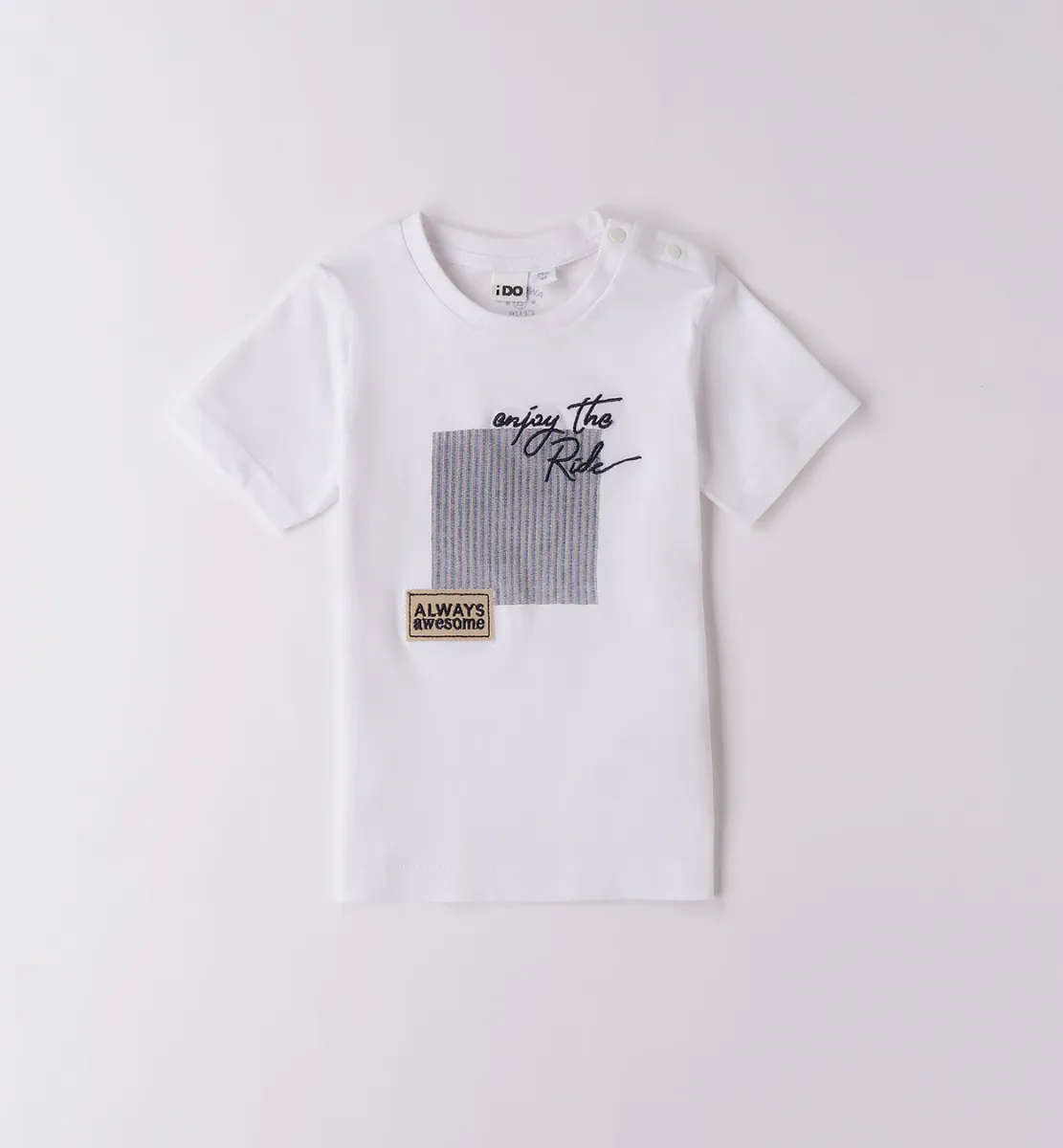 Футболка iDO из 100% хлопка с принтом спереди. Модель доступна в двух цветовых вариантах. Дополните образ брюками или джинсами из коллекции iDO для мальчиков!