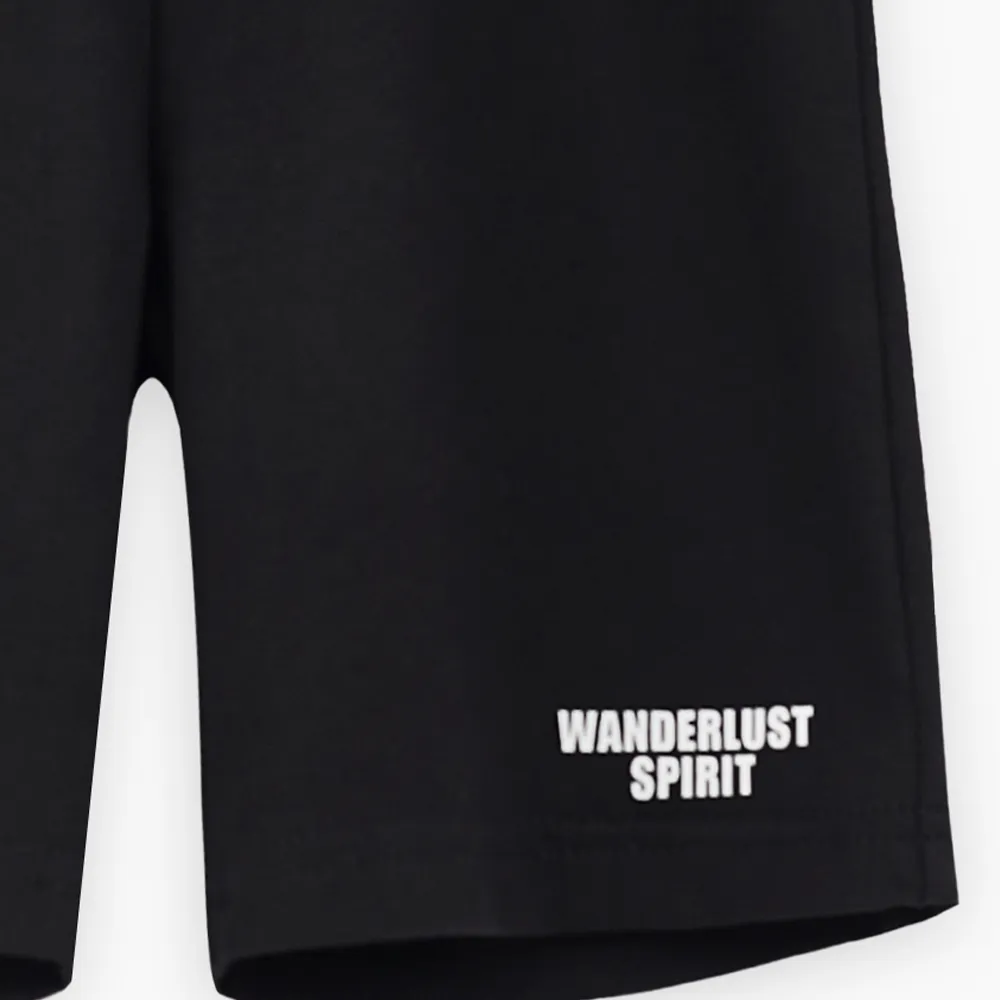 Чёрные шорты для мальчика. Комфортная прямая модель. Изделие на мягком эластичном поясе, со средней посадкой. Шорты декорированы авторским шрифтовым принтом.