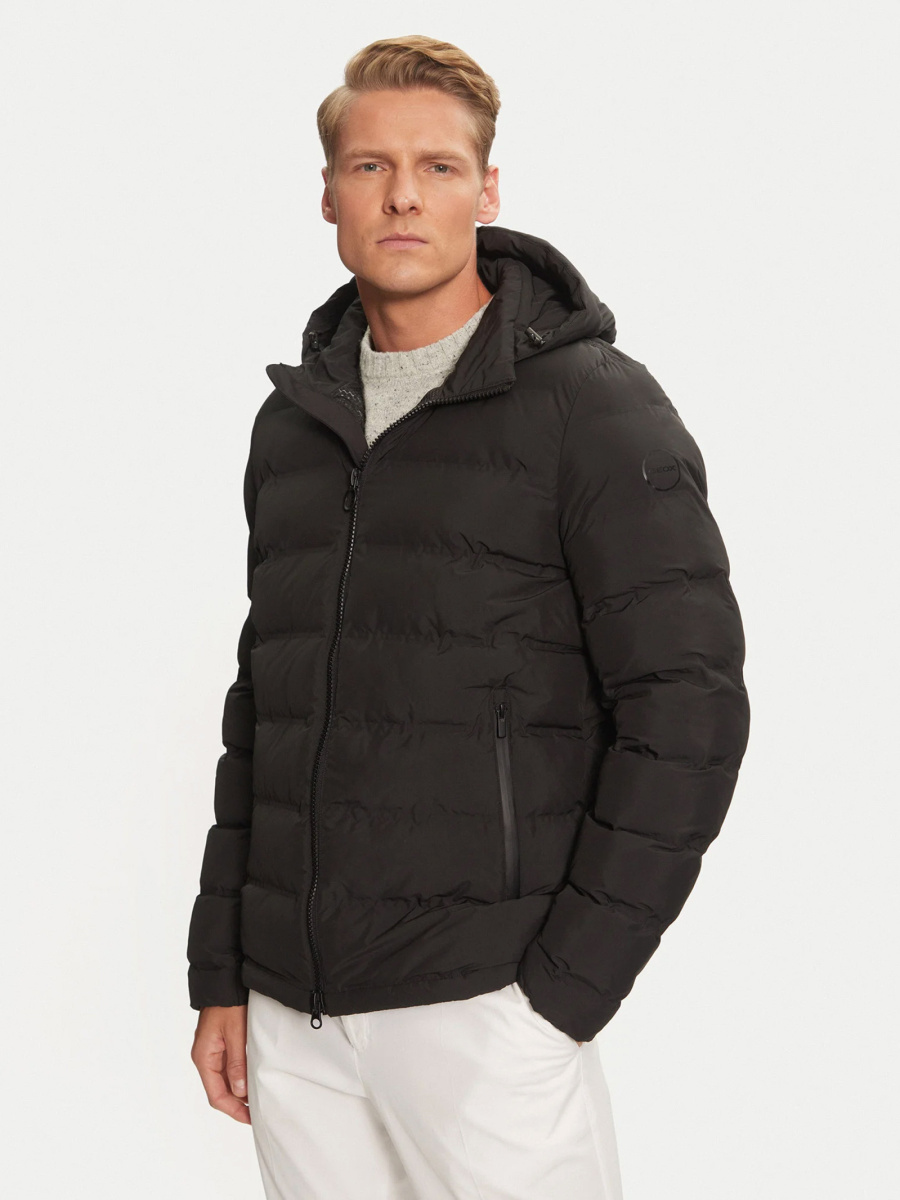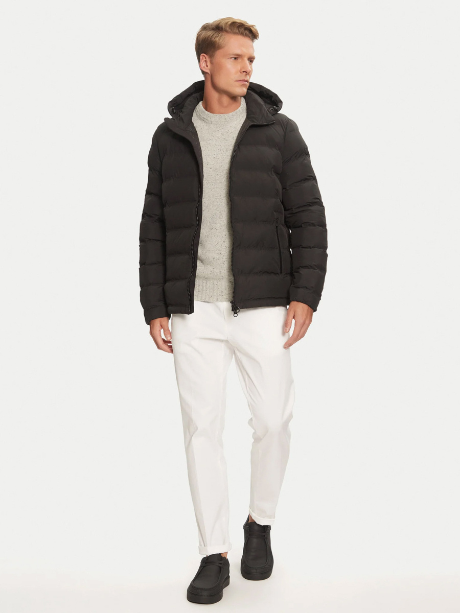 Утепленная куртка выполнена из стеганного водоотталкивающего текстиля с искусственным наполнителем. В изделии использована уникальная запатентованная технология GEOX Respira, которая предусматривает естественное выделение тепла через аэрационные мембраны в плечевой зоне. Это позволяет телу дышать, не задерживая влагу изнутри и не пропуская ее снаружи. Детали: застежка на молнию, несъемный капюшон, два внешних кармана.