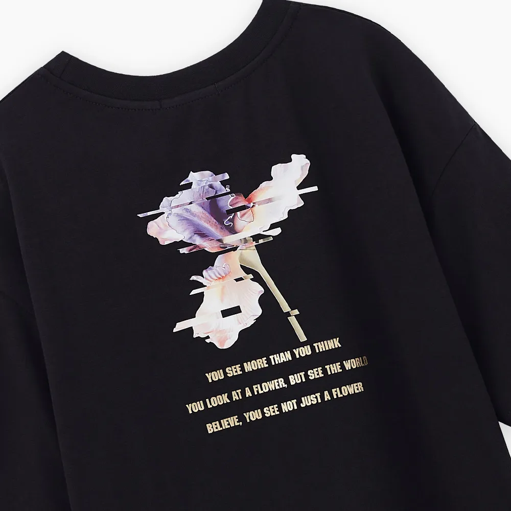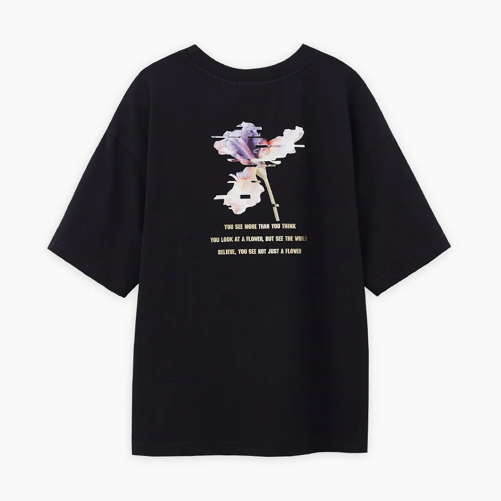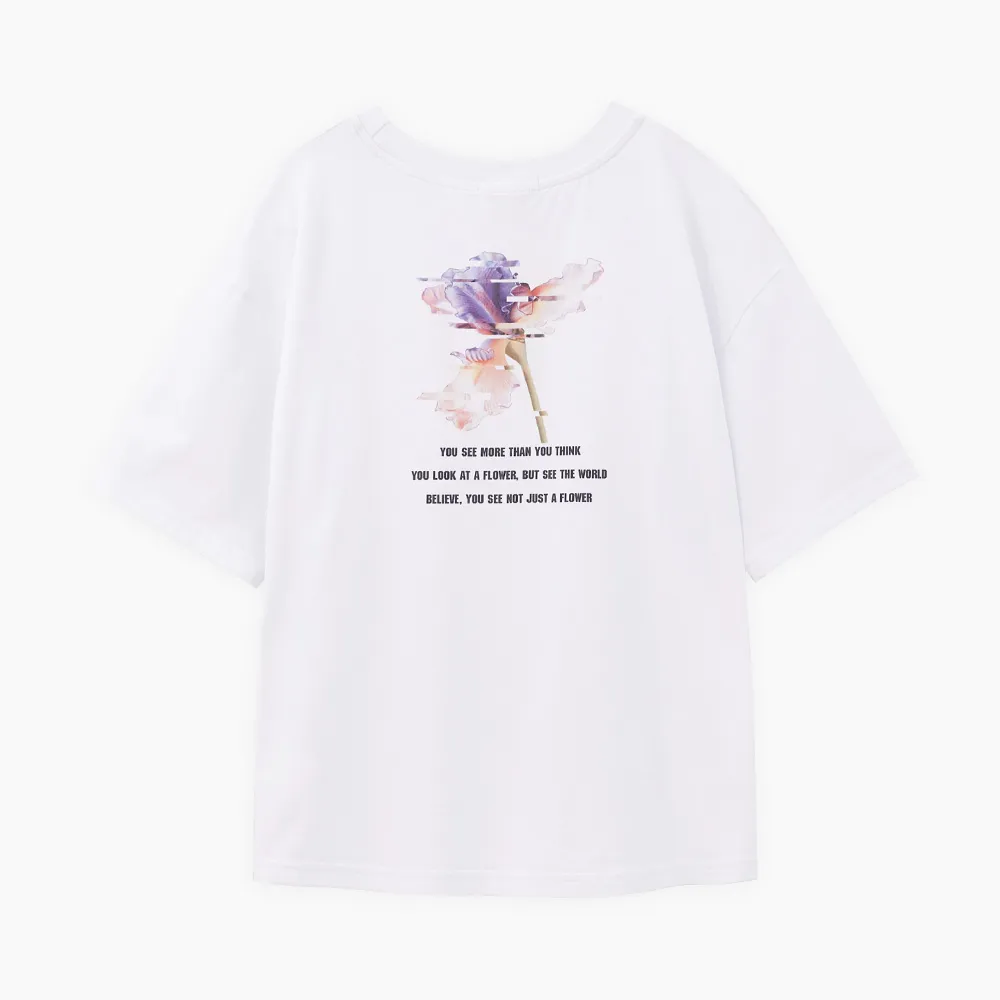 Дизайнерская  футболка для девочки. Прямая объёмная модель. Спущенная линия плеча. Эластичная горловина. Футболка с авторским принтом, инновационная DTF-печать, устойчивая к многократным стиркам.