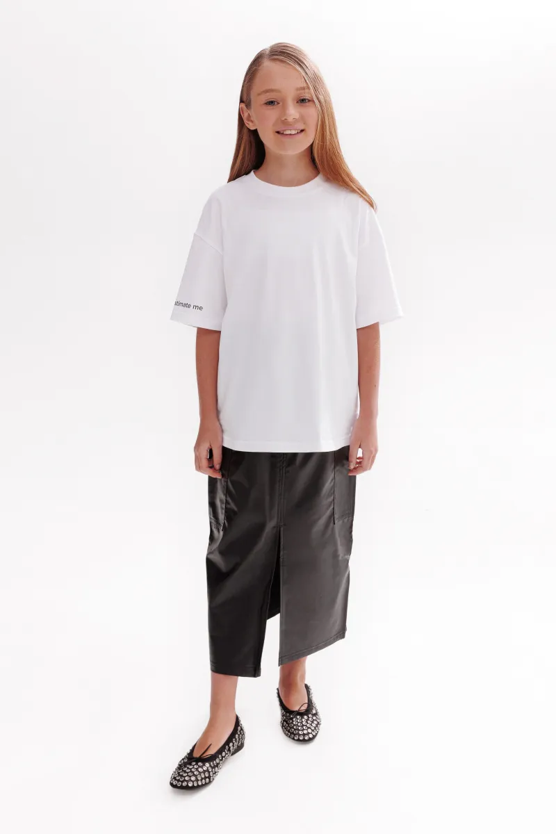 Белая футболка. Прямая объёмная модель со спущенной линией плеча. Удлинённые рукава и эластичная горловина из рибаны обеспечивают комфорт. Авторский мотивационный принт. Универсальные модель, которая легко комбинируется и подходит для разных случаев.