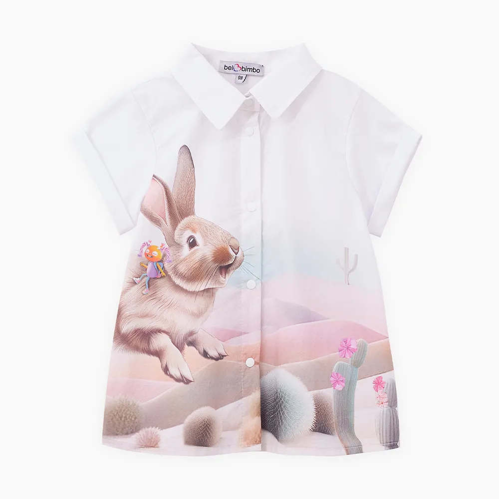 Дизайнерская блузка для девочки. Модель комфортного трапециевидного силуэта. Комфортная застёжка на кнопки. Блузка из поплина с эффектом "жатости", что придаёт оригинальный внешний вид и не требует глажки. Авторский принт.