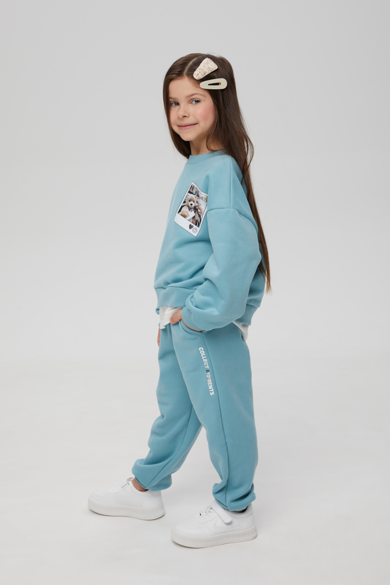 Брюки приятного серо-голубого оттенка для девочки. Прямая модель со средней посадкой. Изделие без застежки. Мягкий эластичный пояс и манжеты из рибаны. Брюки дополнены карманами-хулиганами. Модель из тактильно приятного футера – это стиль и комфорт.