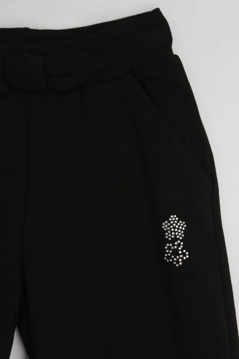 Спортивные брюки iDO из эластичного хлопкового флиса с начесом внутри. Украшены цветами из страз и эластичным поясом с узлом. Дополнены боковыми карманами.