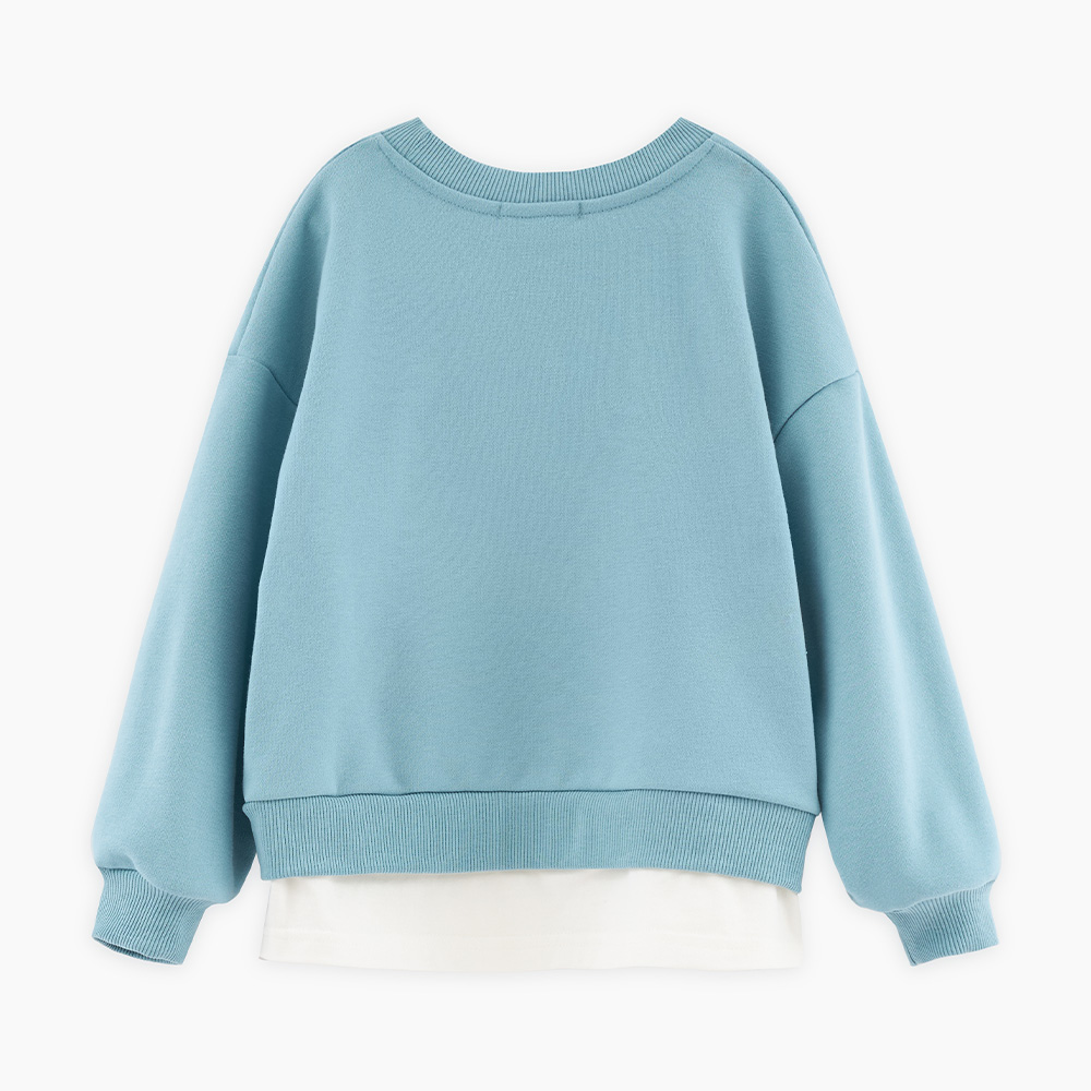 Свитшот с эффектом многослойности (свитшот + лонгслив) для девочки. Модель прямого объёмного силуэта. Спущенная линия плеча. Воротник, манжеты и низ свитшота из эластичной рибаны. Изделие из футера с бархатистым эффектом. Авторская DTF-печать.