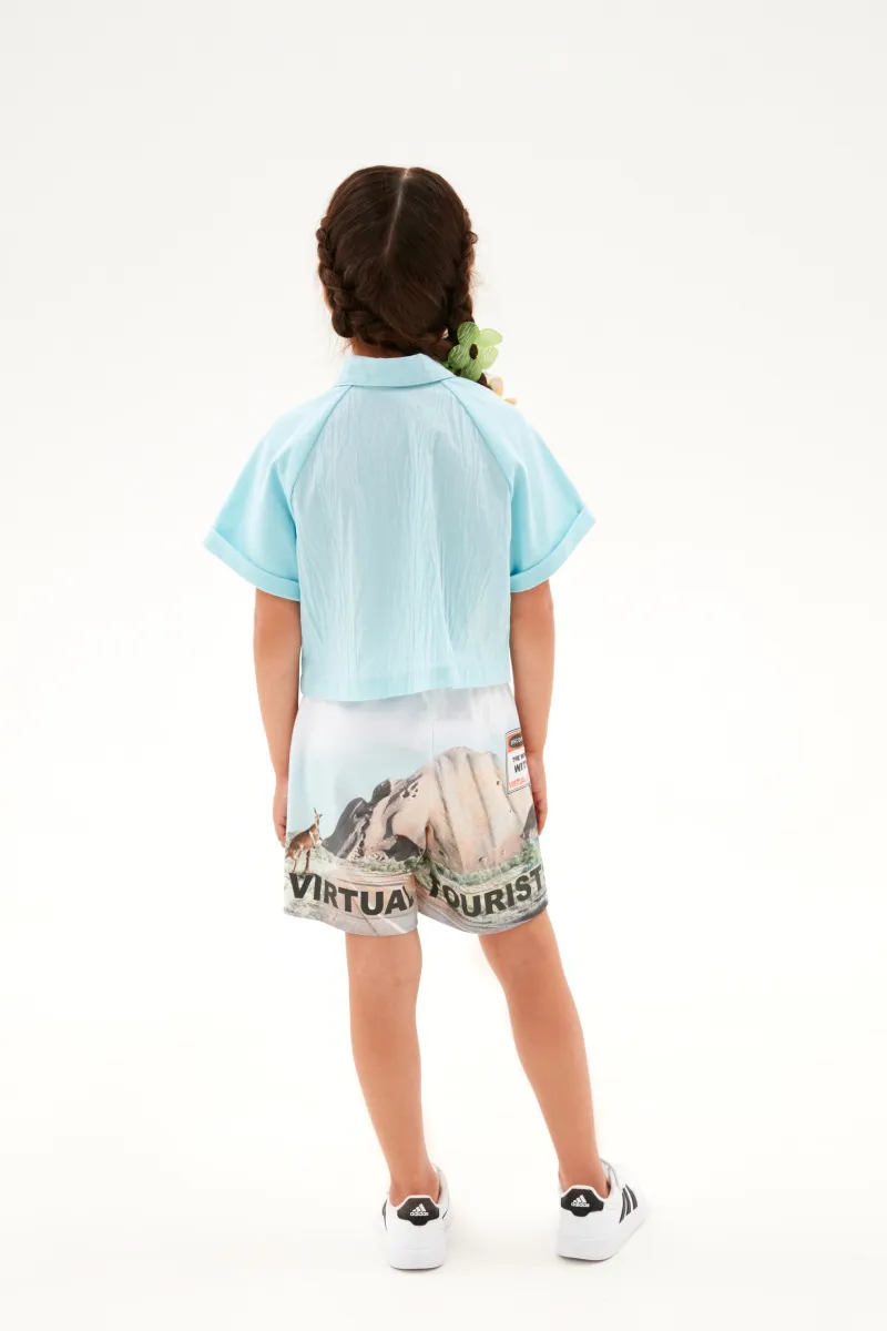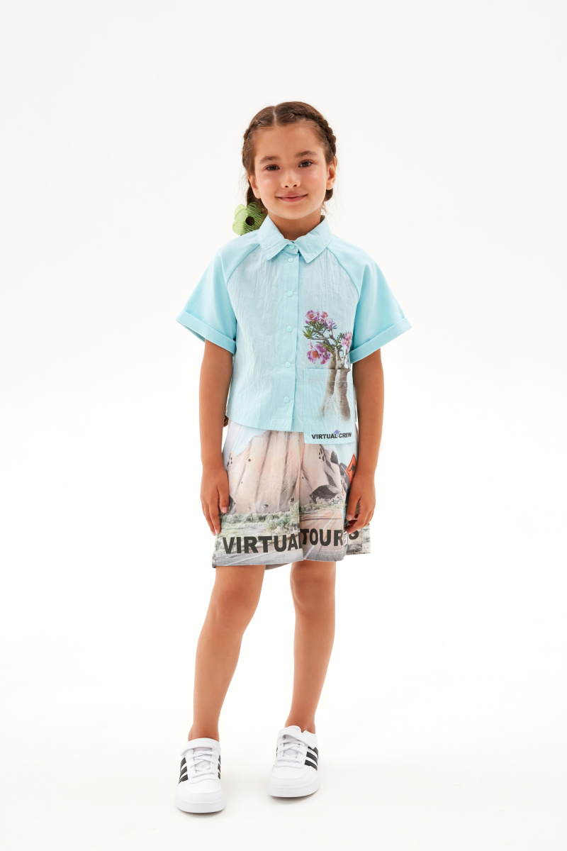 Яркие шорты для девочки. Прямая модель. Изделие на мягком эластичном поясе, со средней посадкой. Шорты дополнены карманами-хулиганами. Модель декорирована цифровыми авторскими принтами.