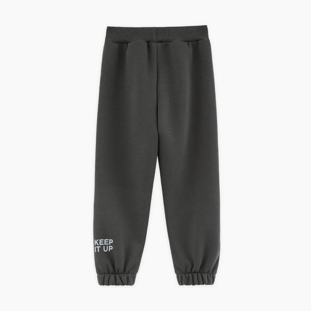 Базовые брюки глубокого оттенка тёмный лес для мальчика. Прямая модель со средней посадкой. Мягкий пояс из рибаны, манжеты на эластичной ленте. Брюки дополнены лаконичным авторским шрифтовым принтом. Идеальная пара с любым худи или жакетом коллекции.