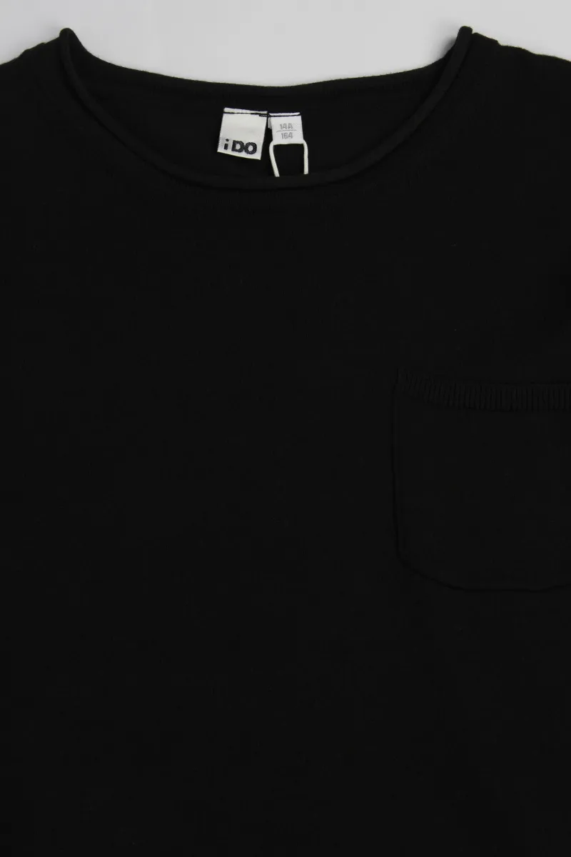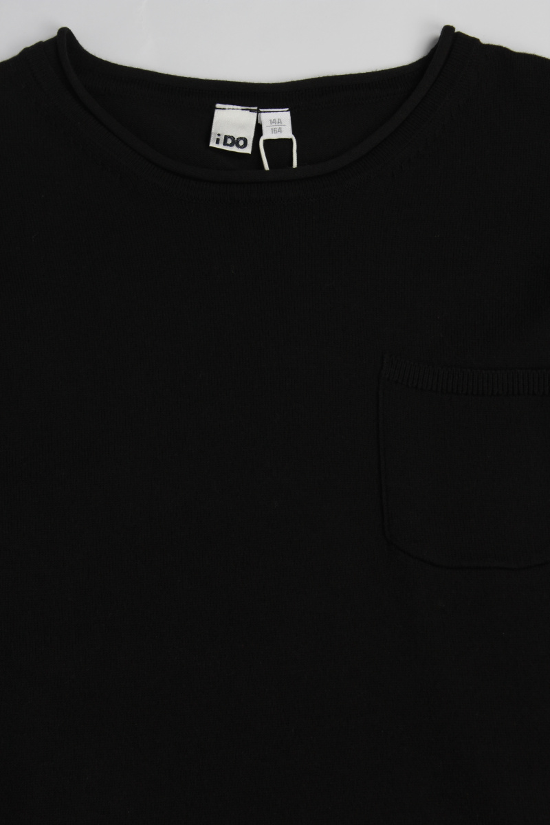 Трикотажный свитер с круглым вырезом и карманом. Универсальная и модная модель.