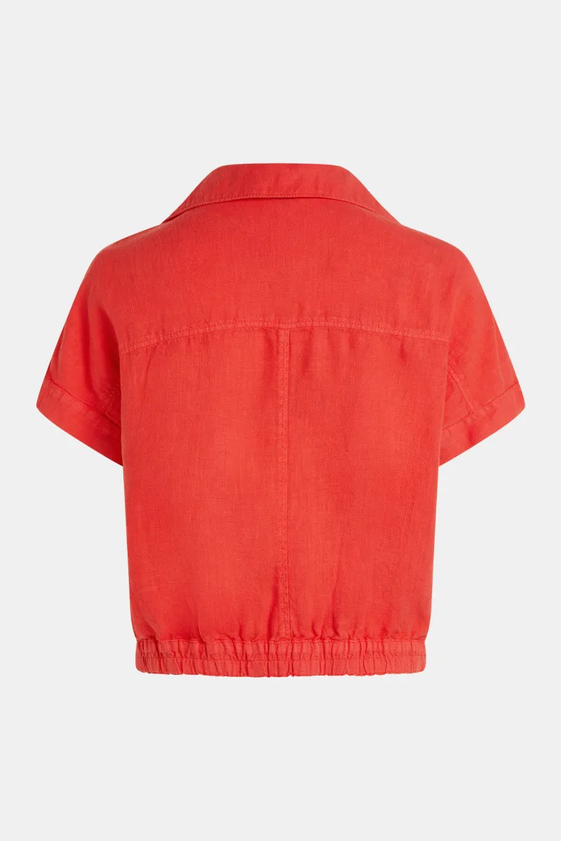 Льняная рубашка-поло с короткими рукавами. Модель имеет отложной воротник, застегивается на пуговицы спереди. Рубашка выполнена из натурального льна, обеспечивающего комфорт и воздухопроницаемость в теплую погоду. Прямой крой и классический дизайн делают ее универсальным элементом гардероба.