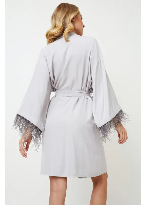 Шикарно и великолепно...не требуется больше слов… Халат Brigitte выполнен из очень мягкой ткани нежно-серого цвета с эффектом шелка. Халат украшен съемными перьями более темного цвета на манжетах и завязывается поясом. Для удобства движений халат дополнительно завязан внутренними завязками. Его легко сочетать с нашей ночной сорочкой Brigitte!