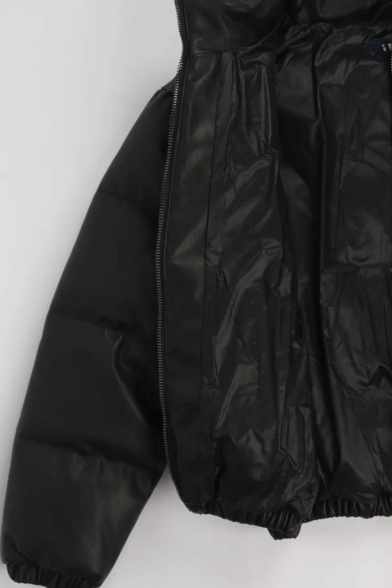 Стеганная куртка iDO  из эко-кожи. Модель застегивается на молнию и дополнена карманами по бокам. На рукаве располагается фирменный логотип.