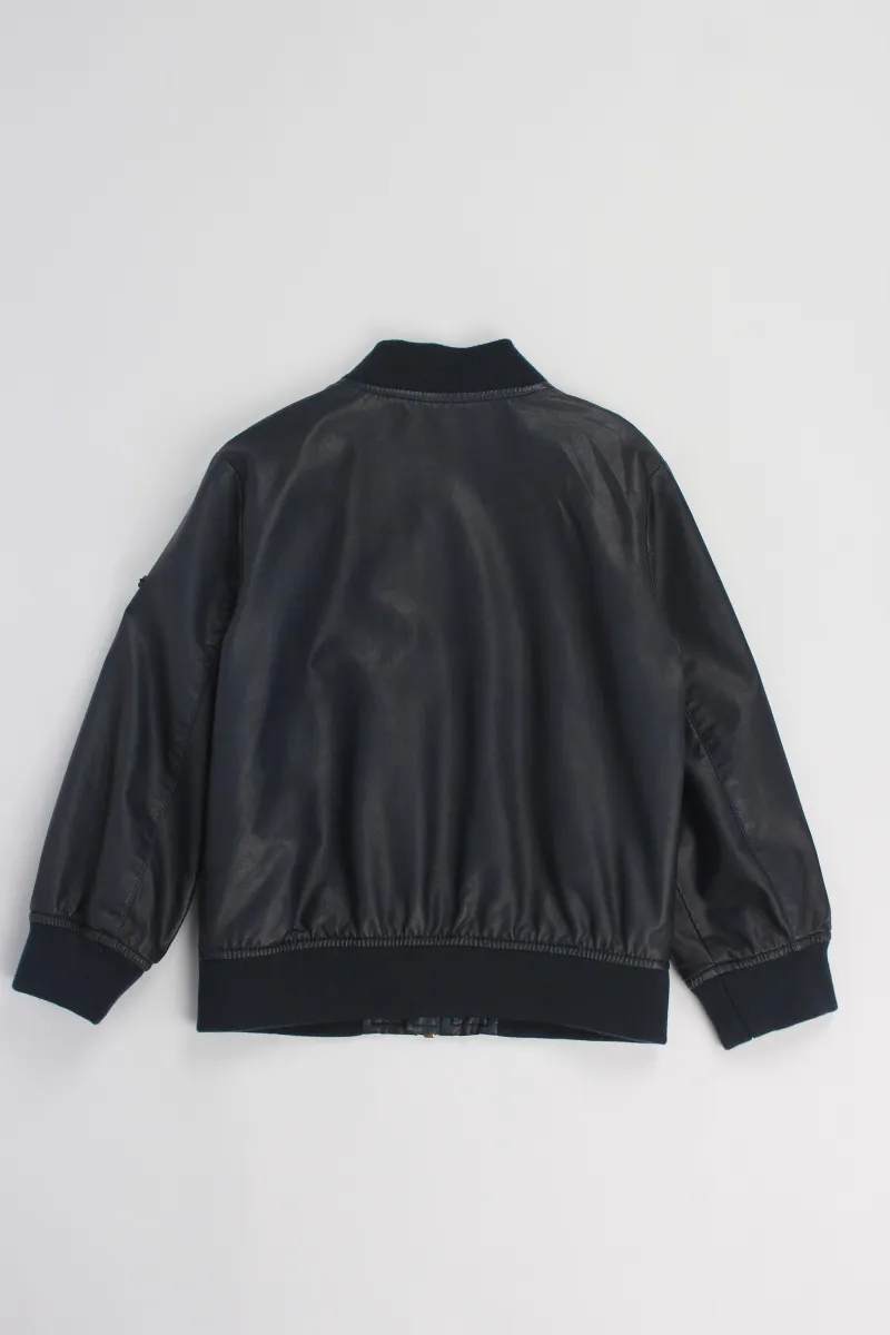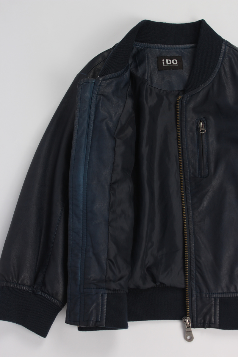 Куртка для мальчиков iDO из эко-кожи. Дополнена карманами , застегивающимися на молнию.Манжеты на рукавах и по низу куртки.