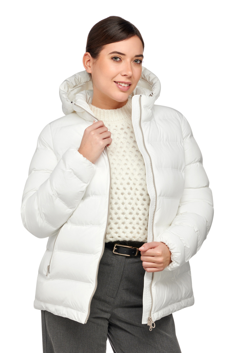 Короткая модель SPHERICA с несъемным капюшоном и лазерной строчкой. Кулиска внизу, плотная крупная пластиковая молния.